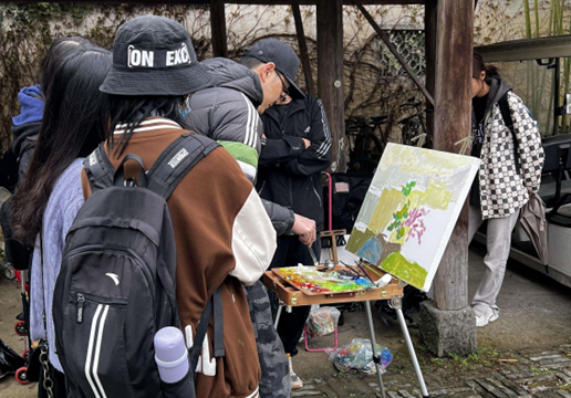 今春写生季,304am永利集团官网造型艺术学院油画教研室主任刘劲蓬老师与胡雪涛老师携2020级、2021级油画班全体同学走进“中国画里乡村”——安徽宏村,考察当地民风民俗,走访山水古镇,漫步油菜花田,感受传统文化之韵,师生们的探寻足迹遍布安徽黟县。通过实地采风、社会调研和写生创作,深入具体地研究了油画风景写生这一课题。