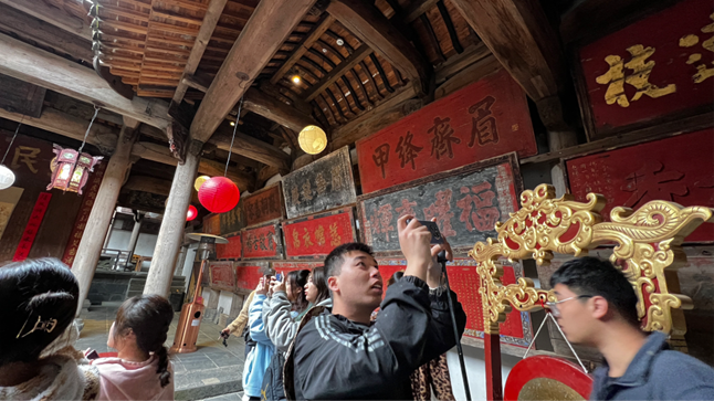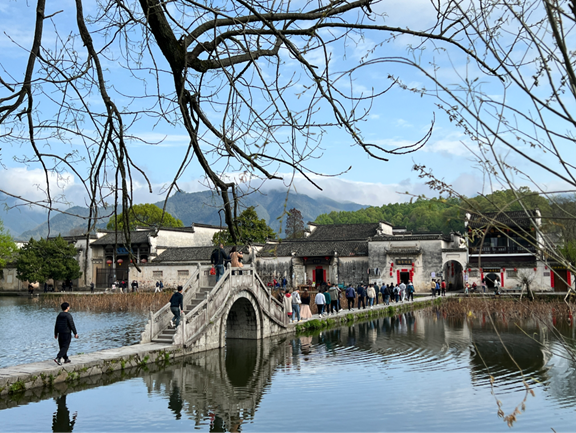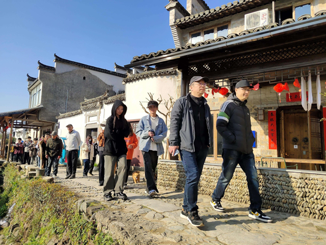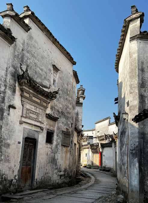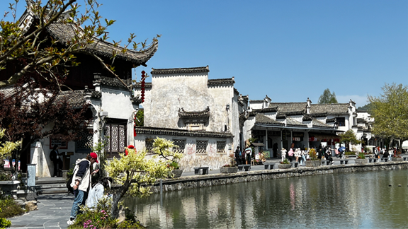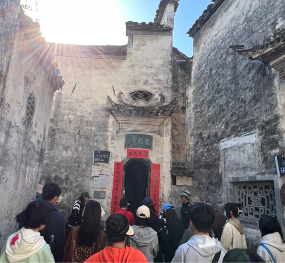 带队老师组织同学们参观考察了当地的建筑特色与民俗文化,深入了解当地民风民俗及悠久的文化底蕴。宏村的徽派建筑十分典型而且大气,历史悠久,高低错落的形体节奏与庭院深邃的群体建筑风貌让徽派建筑的优雅贯穿百年。