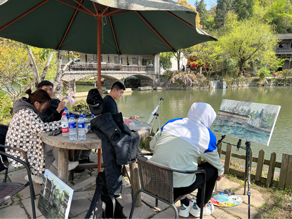“知行合一,笃行致远。”对于从事艺术创作的工作者,要去不断研究、提升自己的水平,任何一个艺术家进行创作时,都离不开熟悉的自然环境、生存状态、和对生活的理解。无论文学、诗词、音乐、绘画,都需要扎根于生活。作为学习绘画创作,写生是绘画学者必须掌握的技能。它是学习绘画、夯实基础不可忽视的环节,也是绘画创作获取经验、灵感的重要途径。写生是观察自然组合方式而后的撷取;写生是自然生活积累而后蜕变的一个升华。自然既是艺术的起点也是归宿。此次徽州写生之旅,师生们收获颇多,也将同学们凝聚一体,留下了美好的回忆。