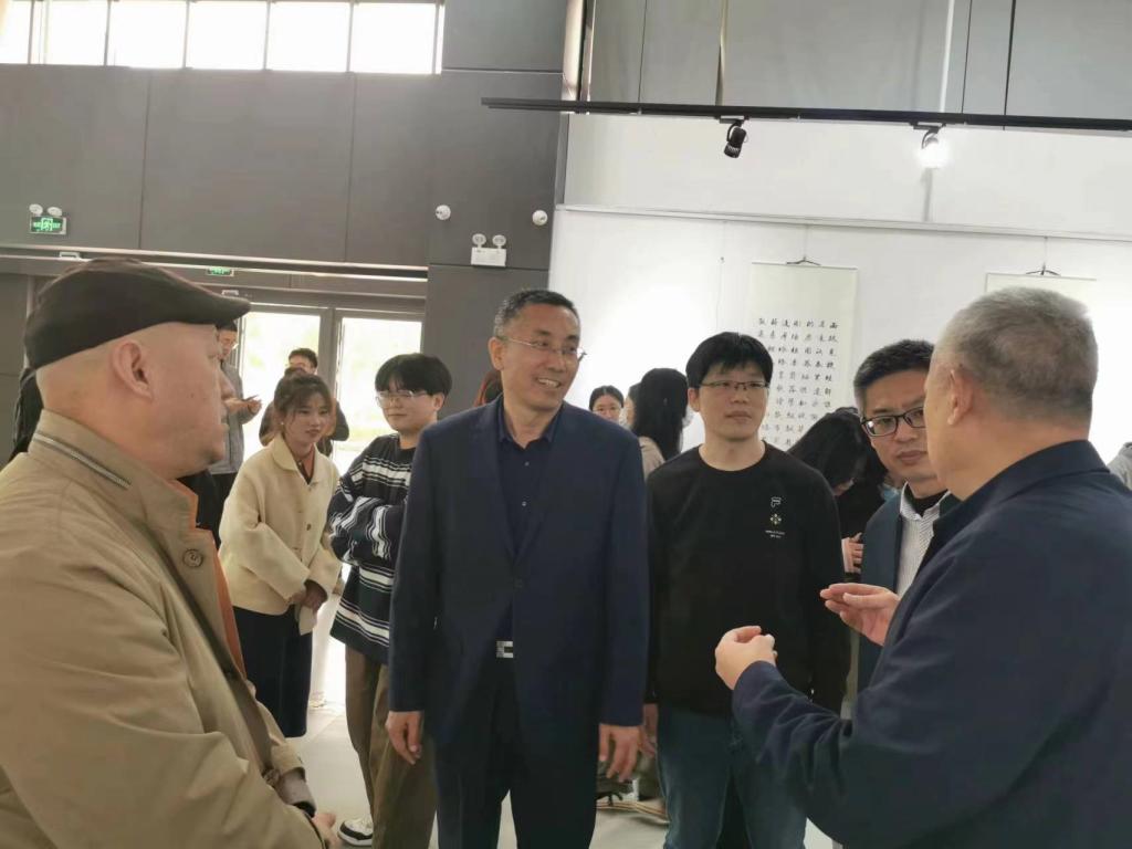 4月3日—12日,造型艺术学院2020级书法专业《楷书临摹》、《楷书创作》作业展在学校图书馆艺术空间举办。4月11日校领导苗新民、韩世春、教务处处长顾群业、团委书记王军强及造型艺术学院院长刘宁、党总支书记李希进以及各二级学院院长、书记和造型学院师生参观了此次展览。