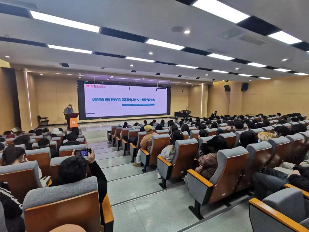 讲座中,顾平教授结合教师的专业背景和自身科研经历,从课题申报书所涉及的“研究现状梳理”“研究意义”“研究目标与路径”“研究内容”“解决问题的逻辑思路”“参考文献”等方面出发,详细讲解了申报书撰写的方法及注意事项。强调,在问题的选择上应立足“学科性、创新性、价值性、适宜性”基本原则,围绕自身研究领域,依托阅读与教学两种形式寻找和发现问题;并以自己所评阅项目为例,分享了国家社科基金、国家艺术基金项目申报书的编写策略。讲座最后,与会教师就研究过程中遇到的具体问题与顾平教授进行了探讨,与会师生表示受益匪浅。