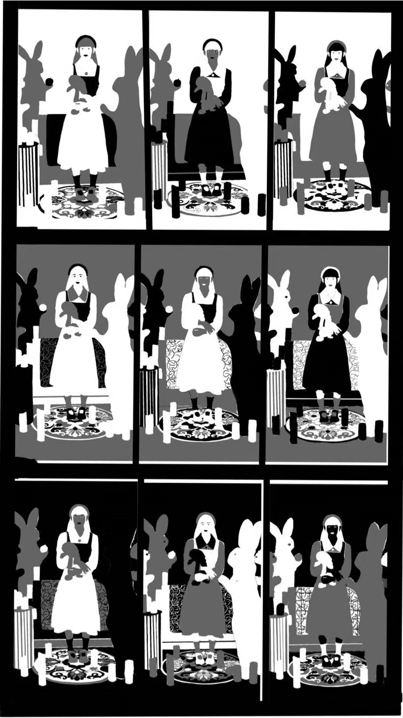 1、选取大师经典作品进行黑白灰训练,首先要求学生将大师作品用PS软件或美图软件转化成黑白照片,然后对黑白图片进行黑白灰图层的归纳和提取,概括出画面黑、白、灰三层关系,注意临近明度的整合,归纳出画面的色调关系,分析作品中黑白灰的面积、位置、点线面关系。通过此项练习让学生敏锐的捕捉到作品中的黑白灰关系,拉开他们之间的对比,并且丰富画面,为之后的创作打下基础。