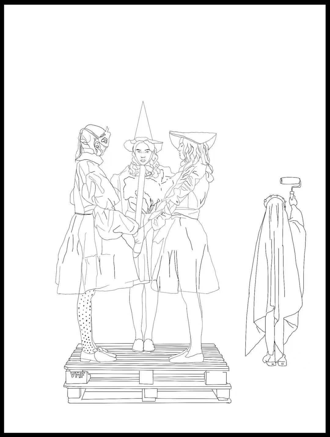 作业要求:大师经典作品构图鉴赏与分析+搜集素材+线稿