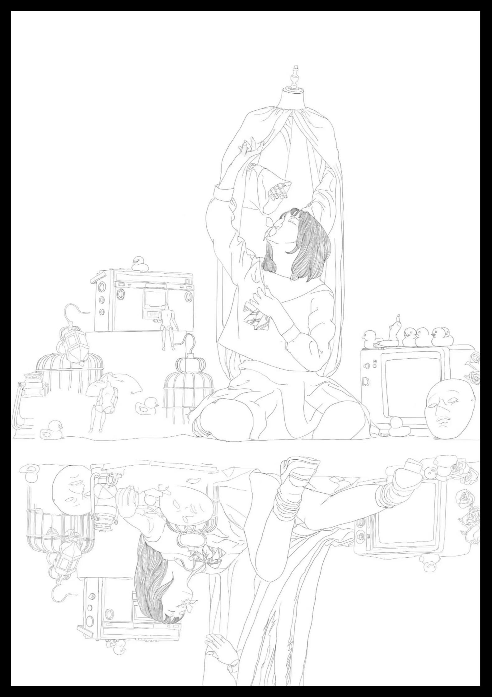 根据素材进行构图的整合,尝试进行各种不同的构图训练,找到适合自己的画面语言表达,突出创意和观念,在图式上进行大胆的尝试和探索,强化本质和品格的再现转换,从而构建新的构图样式。