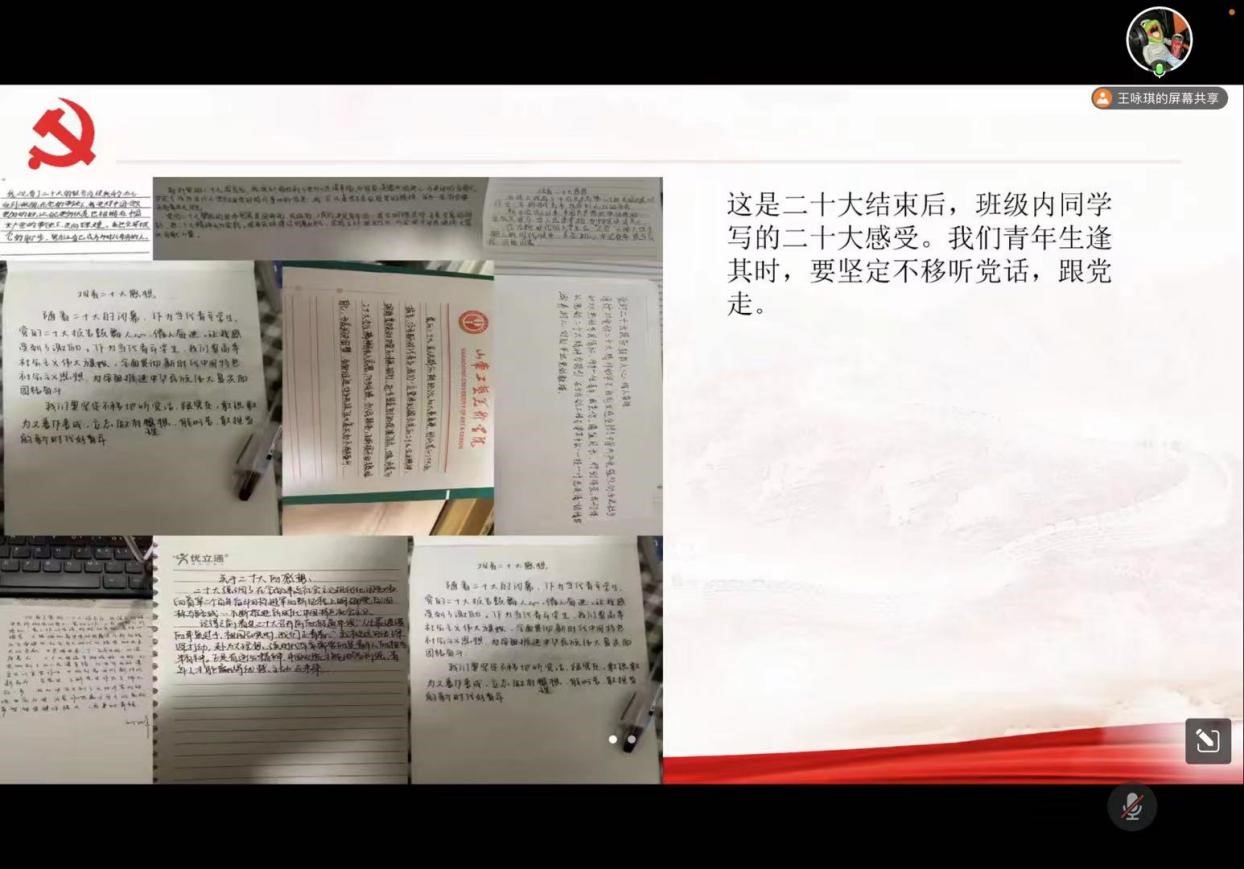 为深入学习宣传贯彻党的二十大精神,根据《共青团中央关于全团认真学习宣传贯彻党的二十大精神的通知》和学校团委“学习二十大、永远跟党走、奋进新征程”主题教育实践活动要求,造型艺术学院团总支组织各团支部于12月1日至9日以线上的形式开展了“学习二十大、永远跟党走、奋进新征程”专题组织生活会,号召广大青年用党的二十大精神激励自己,不忘初心、牢记使命,为建成社会主义现代化强国和实现中华民族伟大复兴的中国梦而努力奋斗。