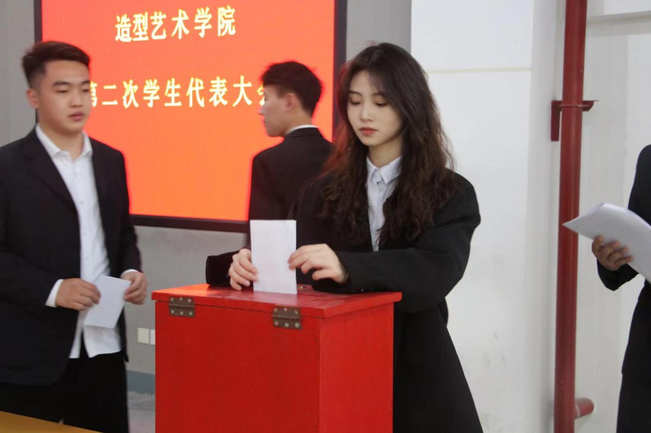 学生代表投票选举造型艺术学院第二十二届学生会执行主席及学生会主席团成员。