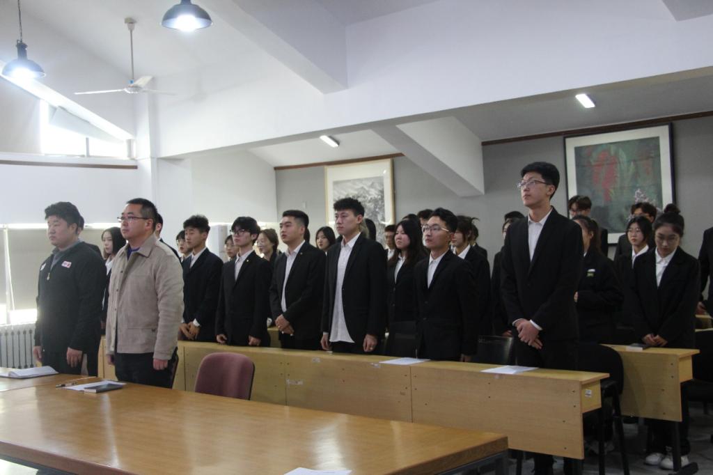 主持人王春晓宣布造型艺术学院第二次学生代表大会开幕,全体起立,奏唱国歌。