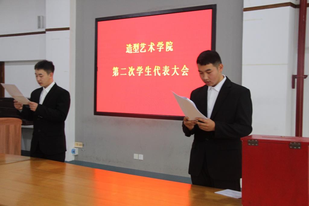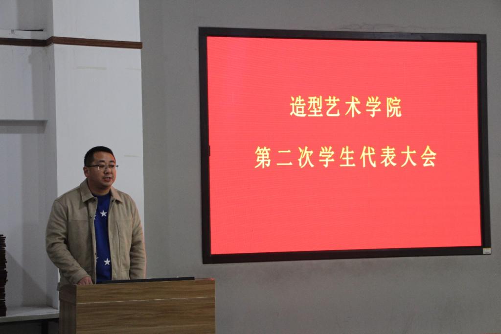 11月17日下午,造型艺术学院第二次学生代表大会在四楼多媒体会议室召开,造型艺术学院团总支书记许威治、辅导员谢军出席本次会议,来自四个年级的总共四十名学生代表参会。