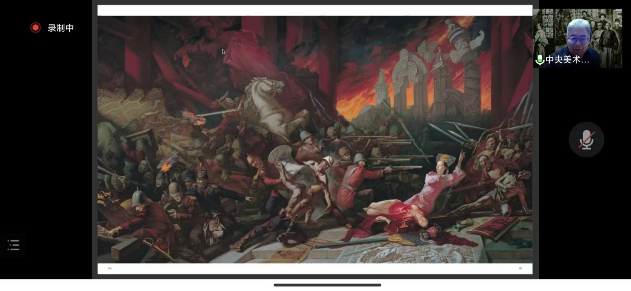 讲座分为三个部分:第一部分孙教授结合自身创作的大量壁画作品,从壁画创作构思、壁画材料工艺、壁画环境、壁画工程施工等多方面全面介绍壁画创作的整个过程,分享创作经验和心路历程;第二部分为大型主题创作,通过《圆明园劫难》等大型创作,讲授主题创作的要求和艺术特点,带我们着重了解创作前期资料搜集、大型主题创作的艺术风格定位以及整合资料、最终创作绘制的过程,将主题创作的需求和独特艺术面貌清晰地呈现给我们;第三部分为油画、素描、写生等艺术创作内容,展现了丰富的技巧和深厚功力,传达了绘画基础与艺术创作的积累和升华。孙韬教授深入浅出、风趣幽默的讲授风格深受造型艺术学院师生欢迎。在场师生为孙老师的创作所震撼,孜孜不倦的教诲而敬佩,不断探索的精神所感染。讲座最后环节孙韬教授还与学院师生进行了交流与互动,通过自身艺术追求和创作实践全面、深刻地回答了老师与学生代表提出的专业问题。讲座持续了三个多小时,内容丰富、氛围活跃,师生反响热烈。