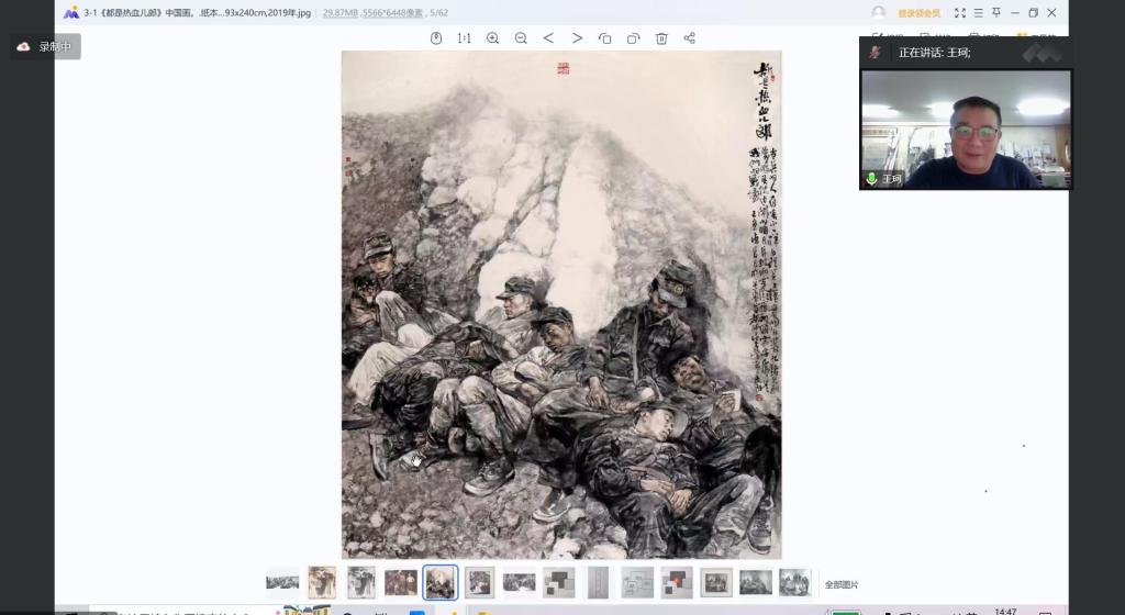 讲座由造型艺术学院院长刘宁主持。在讲座中,王老师用生动的语言、细致的分析深入的解读了主题性美术创作的思路构建和画面表现,从自己的创作经验出发,结合经典作品形式分析、创作审题、画面结构等方面展开讲述,通过草图、造型、表现等画面因素等详细讲解,使我们深入的了解了主题性美术创作的精神内质和艺术内涵在画面表达上的和谐统一。
