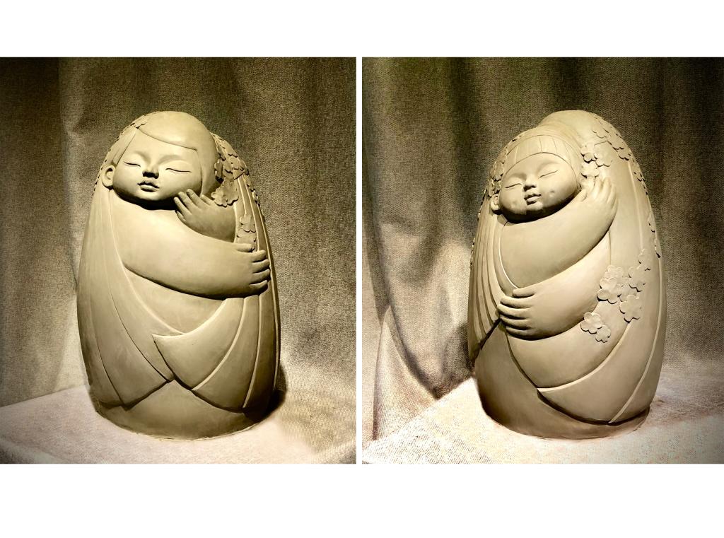 作品简介:母亲用强大而温暖的臂膀保护着我们,将我们环抱在其中,给予我们足够的安全感,我将情感作为雕塑的主题,去传达母亲与孩子之间的爱与依赖。