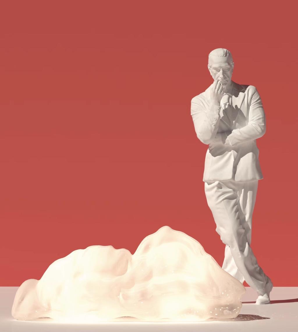 作品简介:作品《云边的杜尚》,经过我长时间对马歇尔.杜尚这位具有划时代意义的当代艺术先锋的认识和了解,我选择把马歇尔.杜尚和云朵作为本次公共艺术创作的主题。用雕塑艺术和灯光艺术的语言来展现他独特的魅力,毕竟借用马歇尔.杜尚的话来说:“我的生活就是一场艺术”。