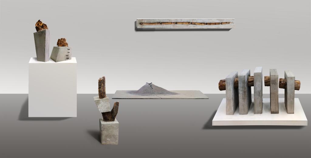 作品简介:通过水泥和木头两种材料的结合,体现工业和自然的对比,生存力量和自然力量的对抗或对峙等,以此为出发点通过不同形式的结合引申出更多的含义和可能性