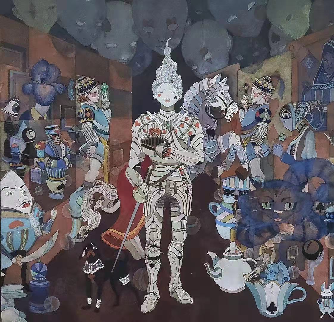 作品简介:作品的名字《寻找爱丽丝》提出了这样一个问题:“爱丽丝在哪里?”这是我给画面中的众多人物提出的问题,同样也是我向观画者,向我自己抛出的问题。