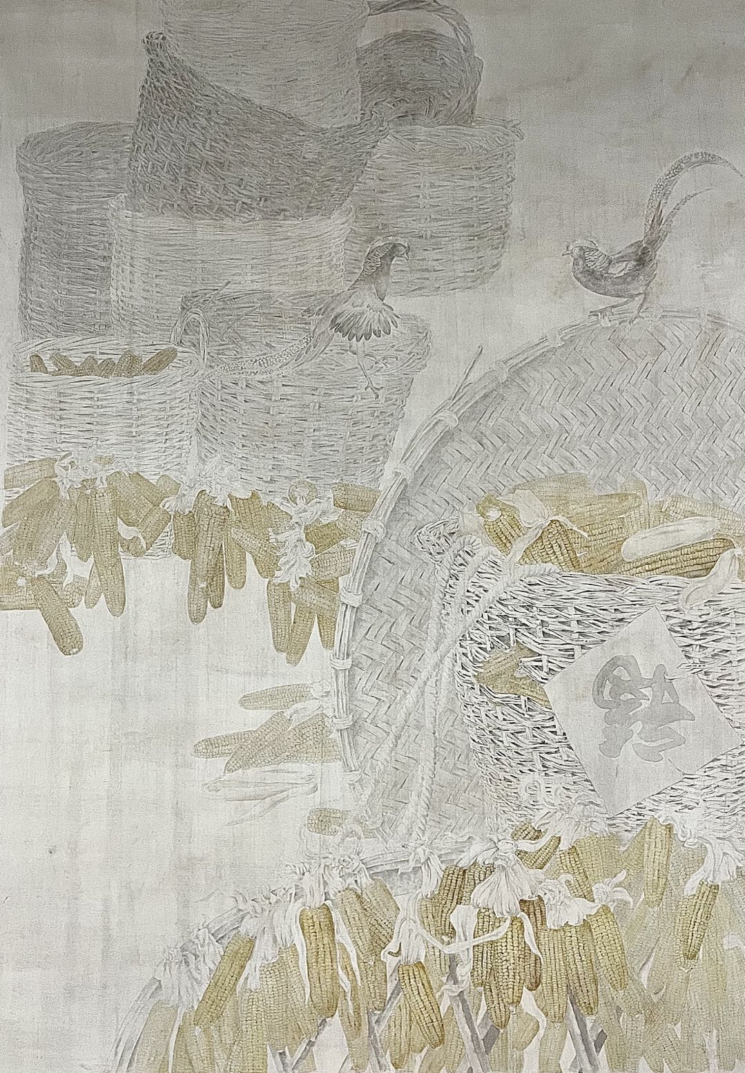 作品简介:大簇堆放的玉米、歪七扭八摞放的篮子,记忆中老家的丰收之季。随着慢慢的长大,记忆中的温馨、质朴总是能在心里徘徊不散。