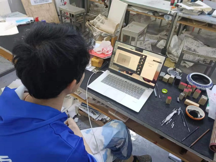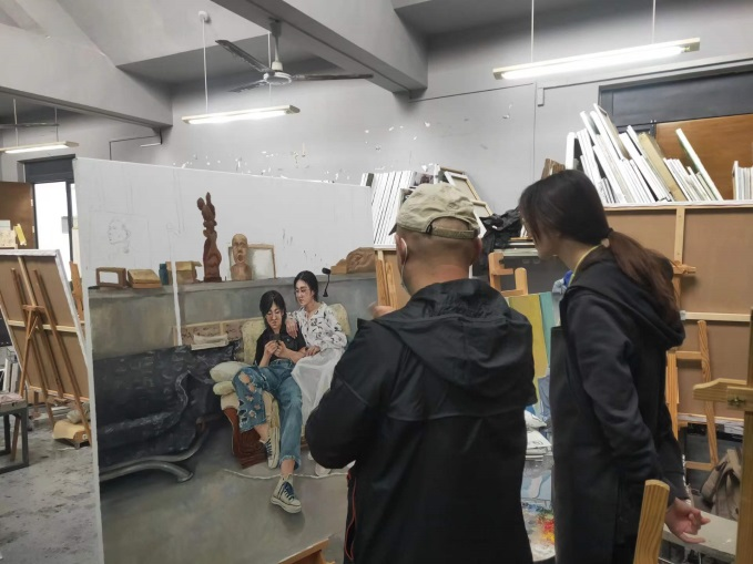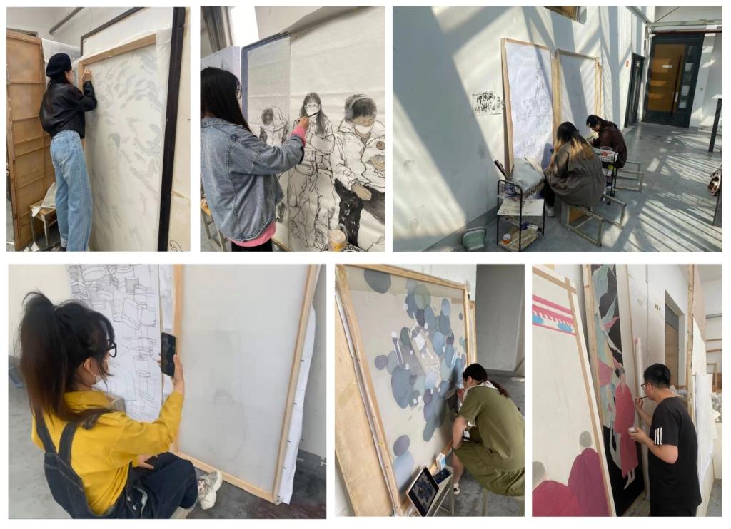 美术创作本质是一种个性化的、创造性的行为活动。在教学中,创作手段和方法的掌握,既要充分发挥学生的主观能动性,也要“因材施教”,发挥课堂教学的针对性,所以,创作课程的教学非常注重教师对学生一对一的指导和探讨。美术创作的过程往往是连续的、不间断甚至一气呵成的,课上的学习时间是十分有限的、是难以满足创作实际需求的,尤其是创作理念的延续和完善,作品表达的充分和完整,都需要将教学所在的所有课上下时间纳入教学,扩充教学进行的范围,才能帮助学生实现作品的真正完成。在目前线上教学的条件下,更加需要利用信息平台,增加师生交流、拉进教学距离,深入创作专业探讨、挖掘创作情感理念。所以在教学实践中,任课教师除了课上的辅导与讨论外,课下也及时与同学通过微信、QQ交流联络,为学生及时答疑解惑。
