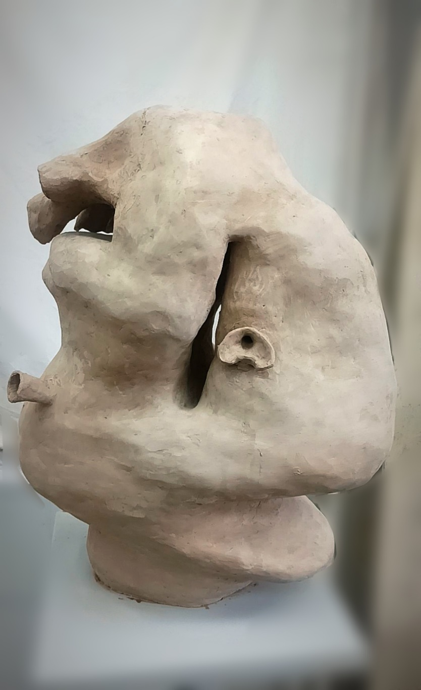 作品名称:《泥条盘筑练习—小丑鱼与珊瑚礁》作品尺寸:64*50*32cm