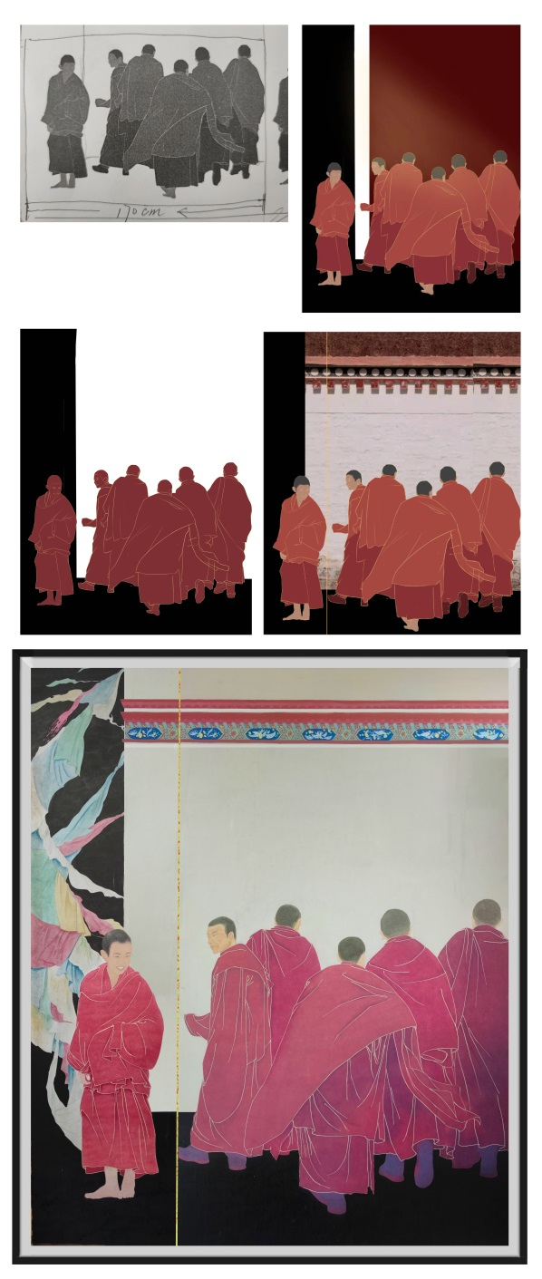 通过九周的课了解了什么是创作,什么是构图,老师通过大量作品向我们展示了构图的巧妙之处,尽管因为疫情改为线上课程,两位老师依然不厌其烦的给我们解释疑惑之处,就算在课下也是随时随地给我看画讲画,课程结束后我们受益匪浅,我一直在思考到底怎么才能将一幅画的正形负形安排的合理安排的到位,期间我也看了很多作品,这让我对构图有了更深层次的理解,这次的创作我相信会为我的毕业创作打下夯实的基础,同时,很感谢两位老师的耐心教导。