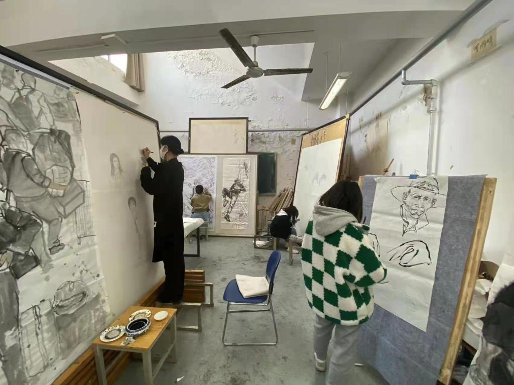美术创作本质是一种个性化的、创造性的行为活动。在教学中,创作手段和方法的掌握,既要充分发挥学生的主观能动性,也要“因材施教”,发挥课堂教学的针对性,所以,创作课程的教学非常注重教师对学生一对一的指导和探讨。美术创作的过程往往是连续的、不间断甚至一气呵成的,课上的学习时间是十分有限的、是难以满足创作实际需求的,尤其是创作理念的延续和完善,作品表达的充分和完整,都需要将教学所在的所有课上下时间纳入教学,扩充教学进行的范围,才能帮助学生实现作品的真正完成。在目前线上教学的条件下,更加需要利用信息平台,增加师生交流、拉进教学距离,深入创作专业探讨、挖掘创作情感理念。所以在教学实践中,任课教师除了课上的辅导与讨论外,课下也及时与同学通过微信、QQ交流联络,为学生及时答疑解惑。