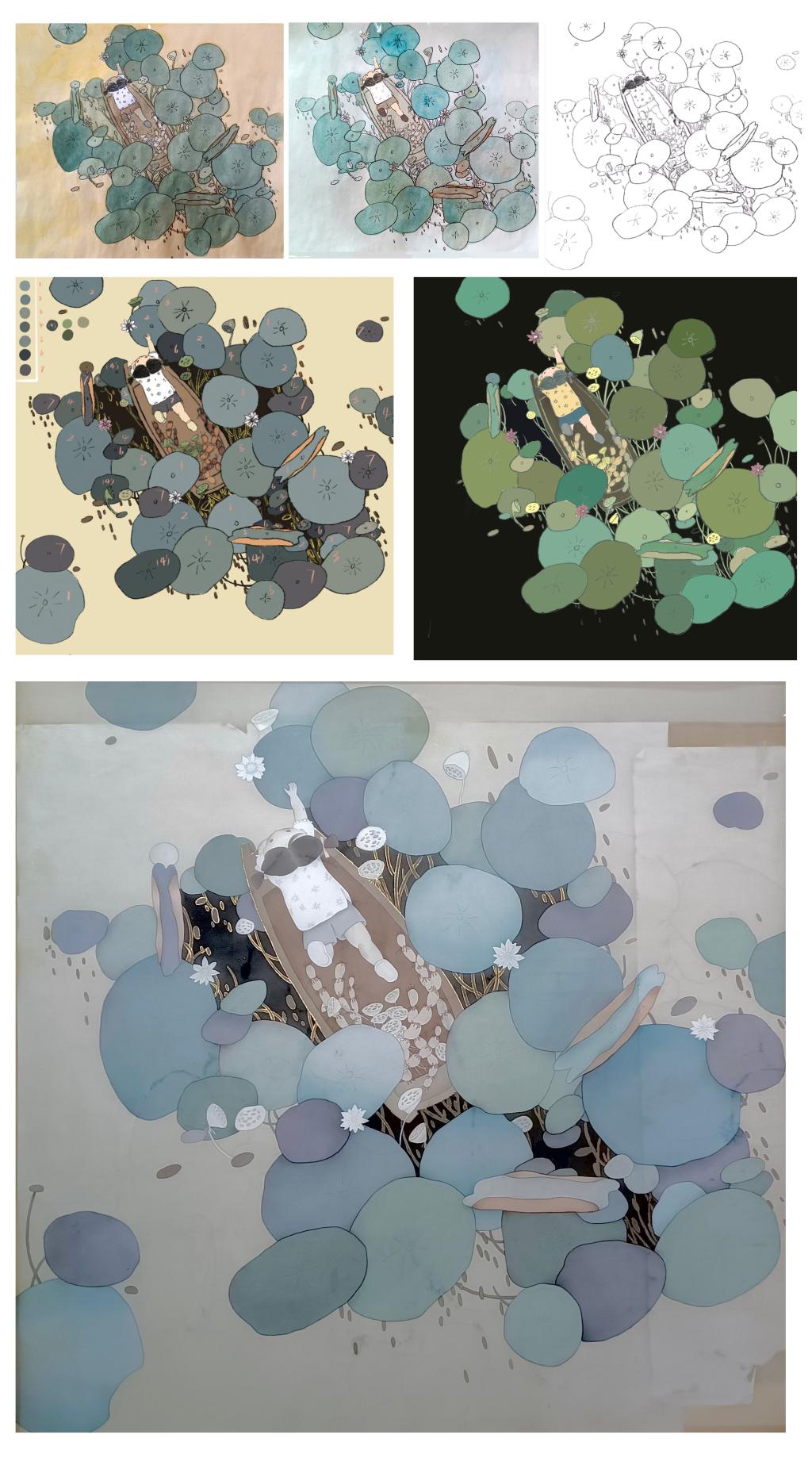 通过这几周的创作学习,我对创作的过程有了基本的认识,从确定主题,到草图,到小稿,到线稿和色稿,步步斟酌和思考,在老师的指导下,创作一张自己的作品。我偏爱童趣的事物,希望自己的作品可以展现儿童的纯真,描绘出儿童眼中的世界,刘金贵老师的绘画作品便带给我我很大的灵感。这次课程让我对人物画创作产生浓厚的兴趣,感谢老师这段时间的指导。