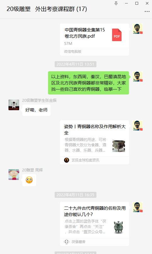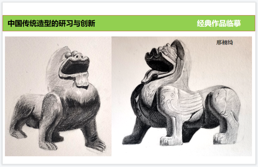 《外出考察》课程作为雕塑专业重要的实践课程,是面向中国传统造型的重要基础课程,从传统造型规律出发,让学生更宽泛的认识雕塑,深入理解中国传统造型特色。由于疫情防控,导致无法实地考察,对于传统造型及造物与周围社会环境的关系,尤其对于石窟雕塑、寺庙雕塑等极具三维立体的艺术无法身临其境感受,对于同学们来说是一个遗憾,在讲课中我也反复强调以后有机会大家要实地去欣赏,正所谓“读万卷书行万里路”关于传统艺术,正如潘鲁生院长说的:到民间去。另外根据疫情线上课程的特点,我加大了理论及创作实践的内容,引导同学们更加全面的认识传统雕塑造型的不同时代地域及风格特色,更加深刻的感受造型艺术的独特魅力,从而激发创作的灵感,扩充艺术素养提高审美能力。