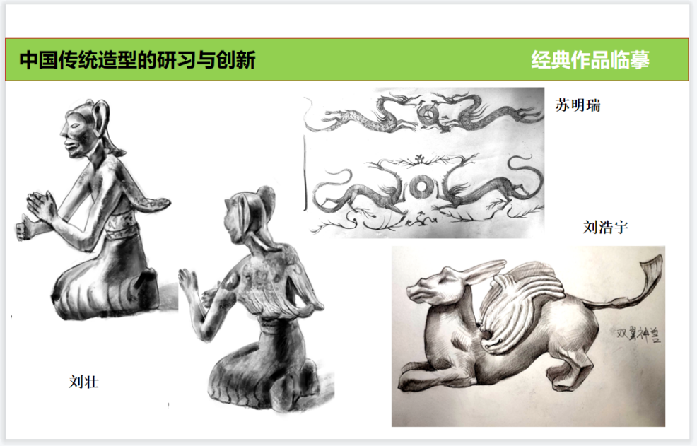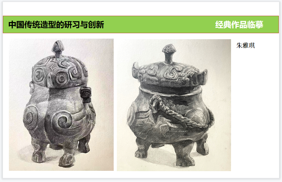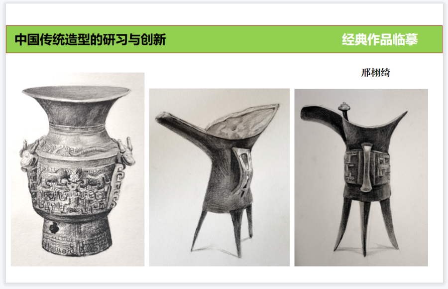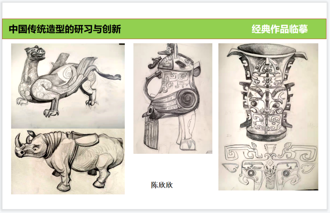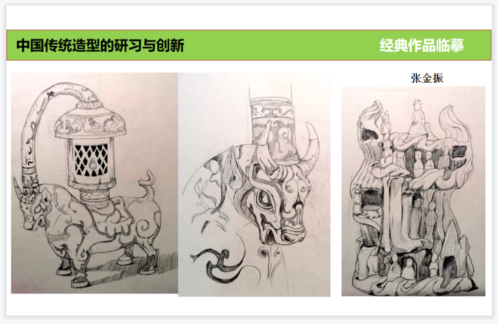 课程设置充分运用网络便利及海量传统造型的资料数据,力争打开同学们的眼界、扩充传统造型艺术阅历、提高造物造型的审美素养。与此同时根据所学内容进行提问及讨论,引导学生对于理论知识的理解和应用,通过方案讲解及针对性的指导,达到掌握并运用的创新能力。