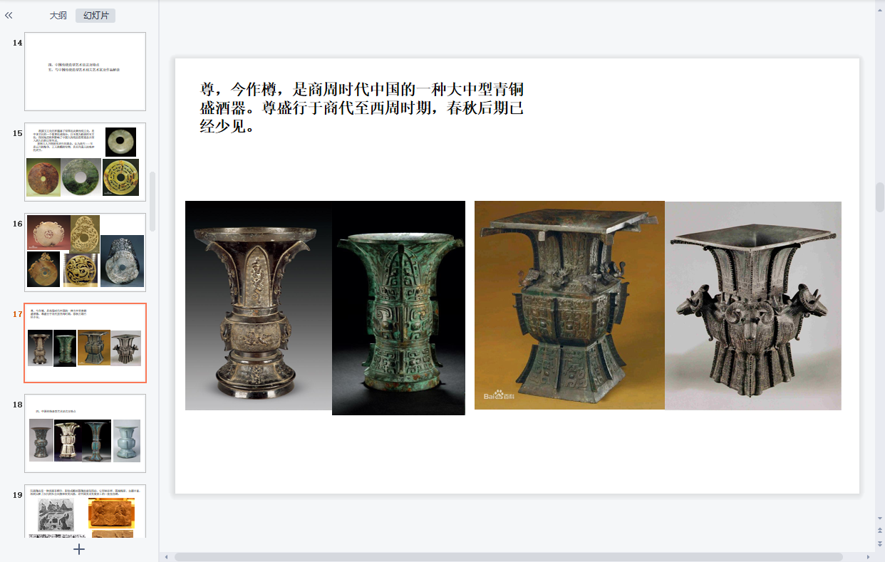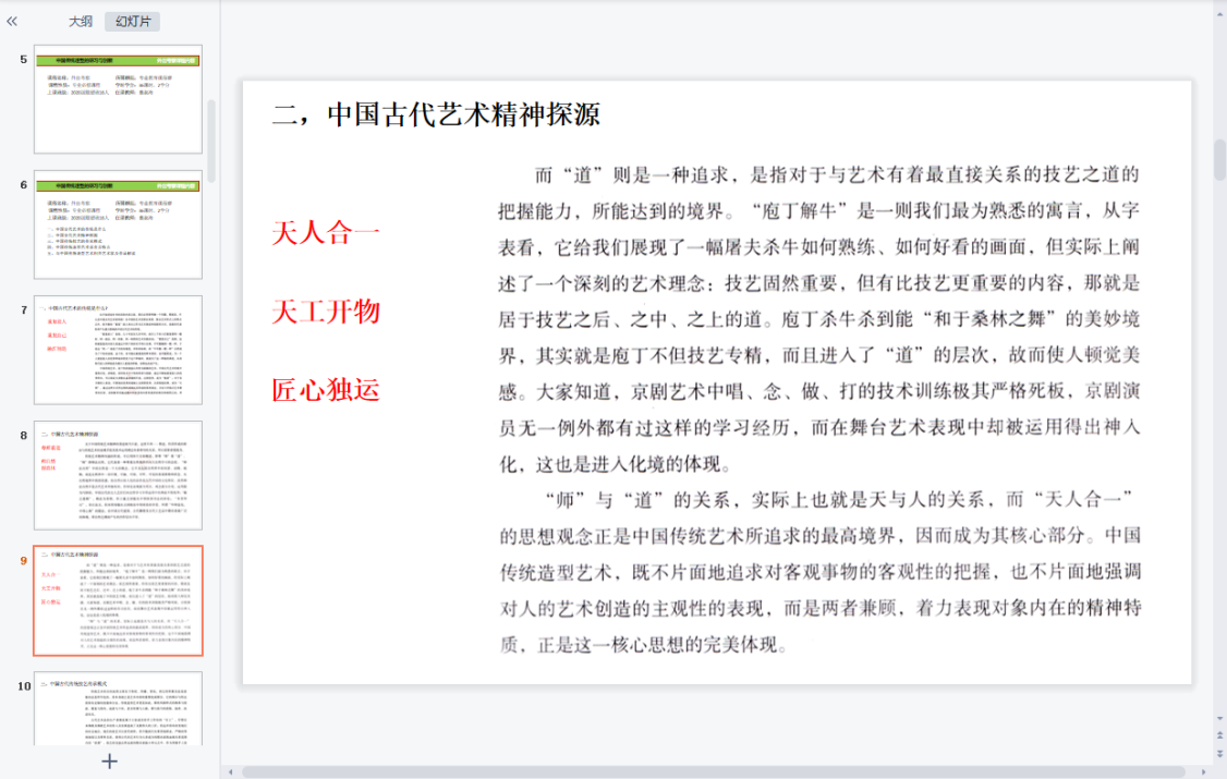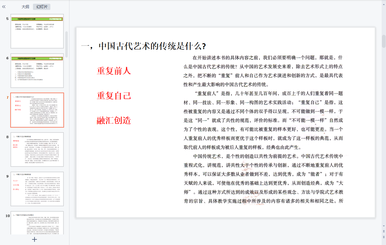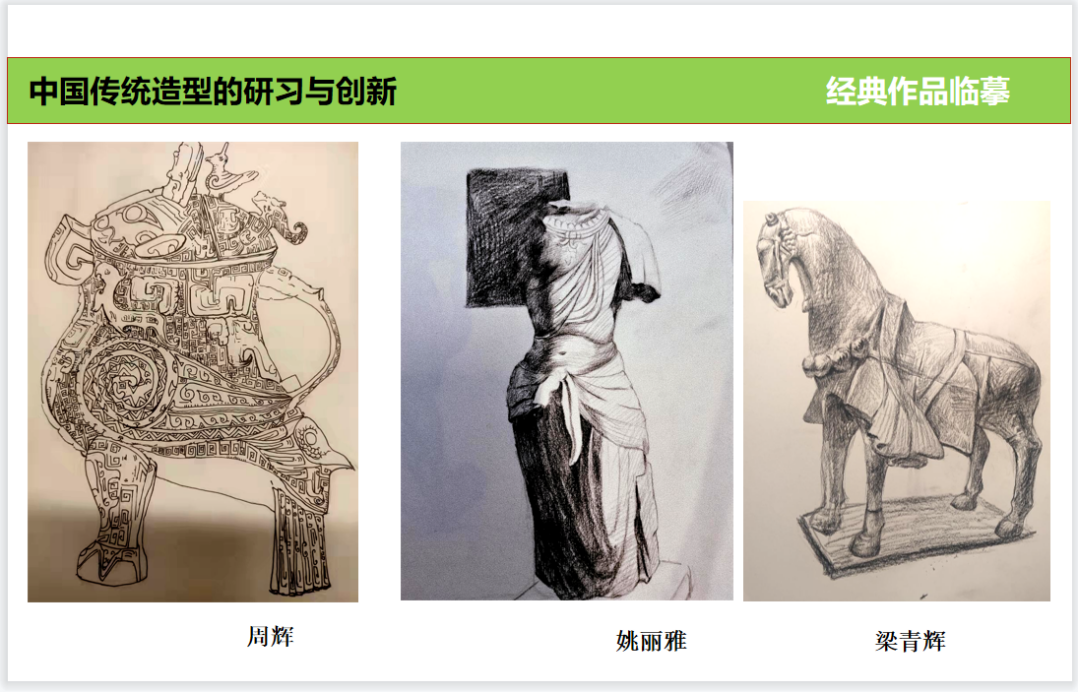 课程设置充分运用网络便利及海量传统造型的资料数据,力争打开同学们的眼界、扩充传统造型艺术阅历、提高造物造型的审美素养。与此同时根据所学内容进行提问及讨论,引导学生对于理论知识的理解和应用,通过方案讲解及针对性的指导,达到掌握并运用的创新能力。