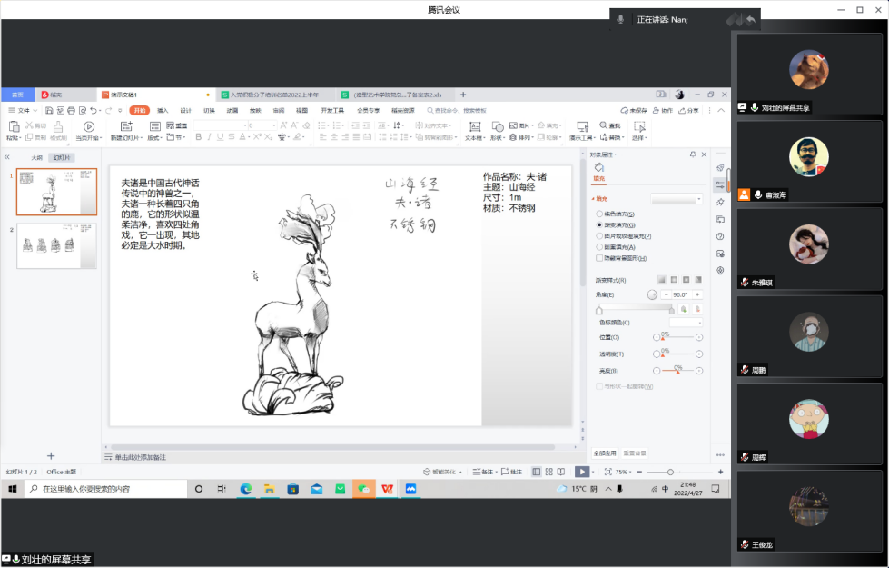 曹淑海老师通过腾讯会议在给同学们上课。