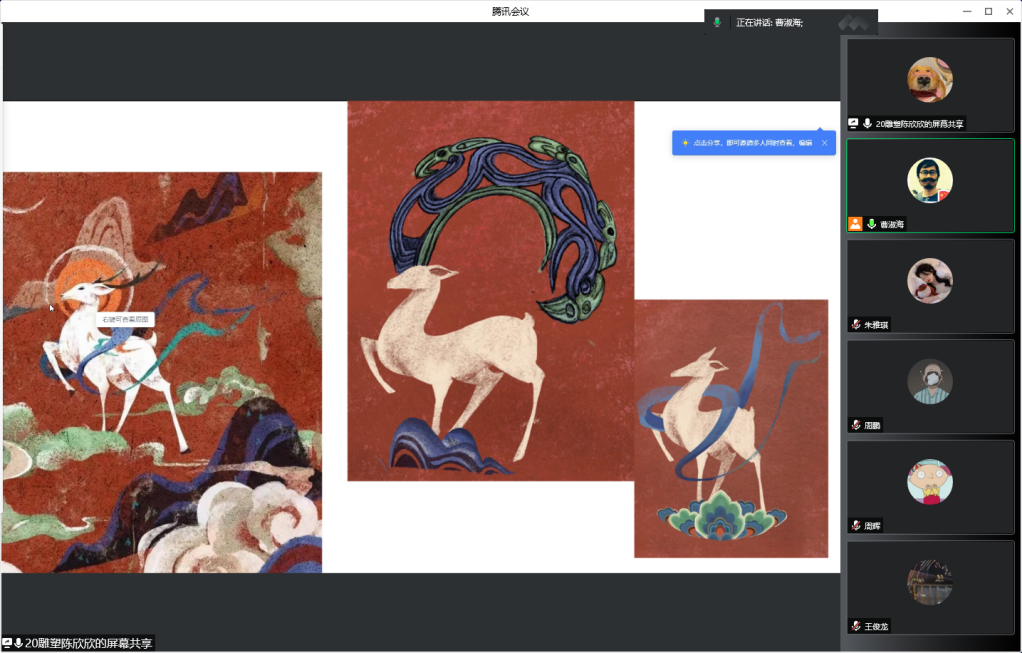 由于疫情防控影响,及时制作线上课程教学方案,力争保质保量的完成课程教学与学习。根据现实状况,外出考察的课程计划改为:“云游石窟美术馆”+网络资源导学+经典作品临摹与创作+“双创”优秀案例云端汇报+创作方案云端讲评的混合式教学方式进行。