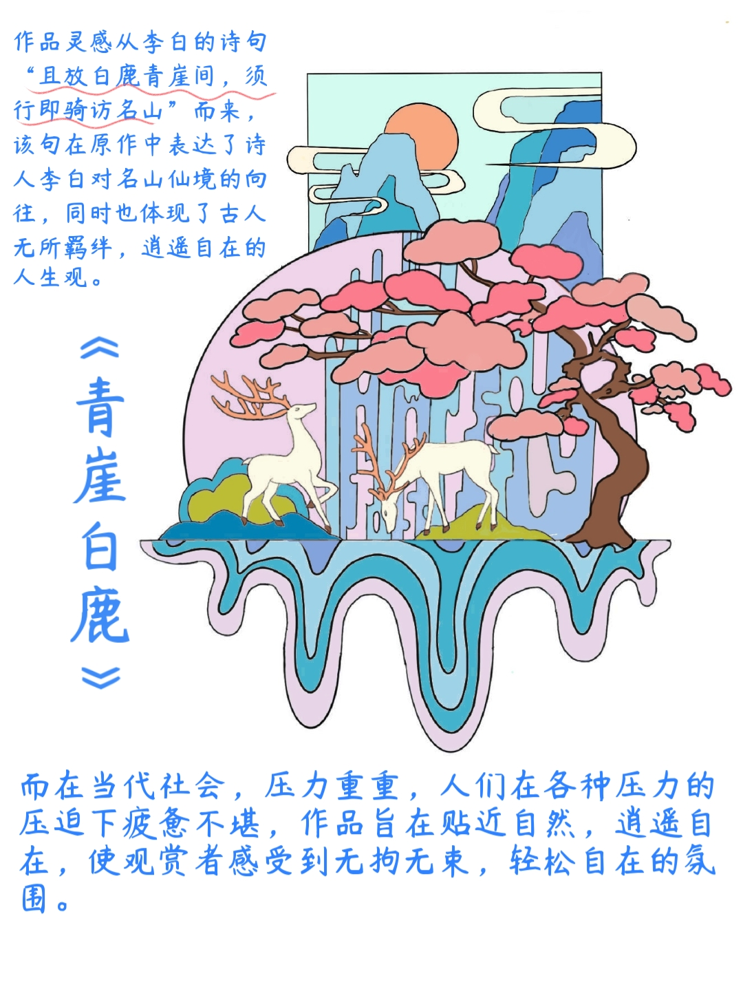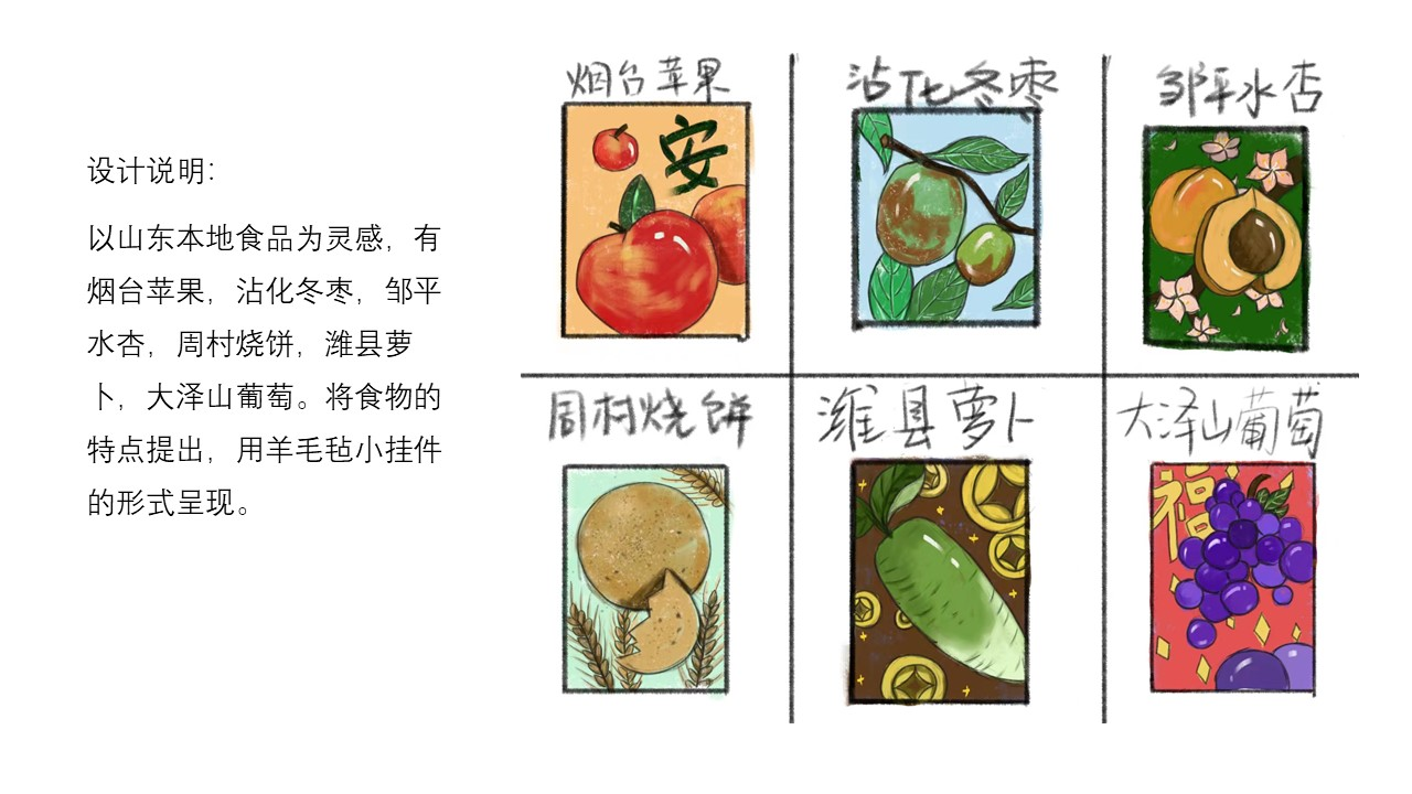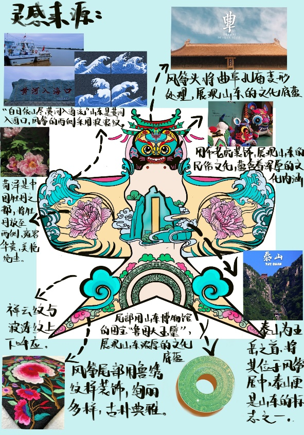 设计内容分为两大模块:一是结合山东手造,将“两创”理念落实到课堂训练中,以赛促教,鼓励学生着眼传统文化再创造,进行软装饰设计;二是自由选题进行壁挂方案设计;作业要求明确创作思路,设计方案要结合材料能更好的表达观念。