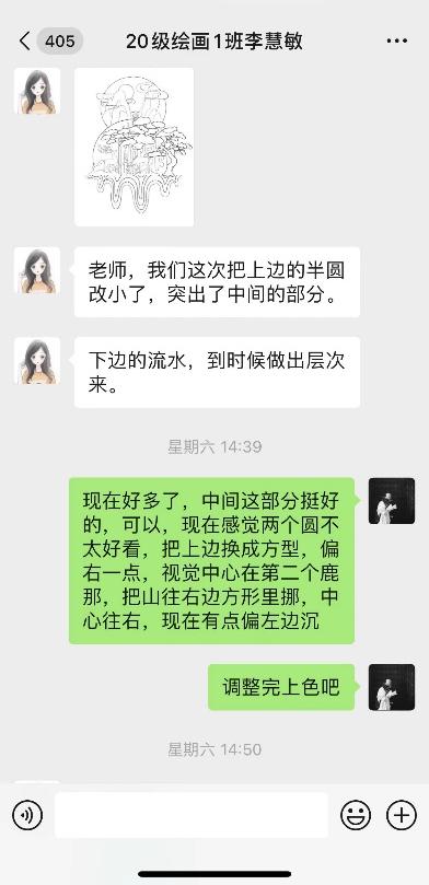点评作业采用集中看稿和分别指导的形式,师生互动答疑,帮助学生选择最佳方案并进行优化,解决学生设计过程中的材料选择和制作等问题,并结合图片、视频等多种网络资源,让学生更直观的了解所选用材料的质感表现和制作方法,引导学生逐步完善设计方案的最终呈现效果,以及规划后期复课后的实物制作。