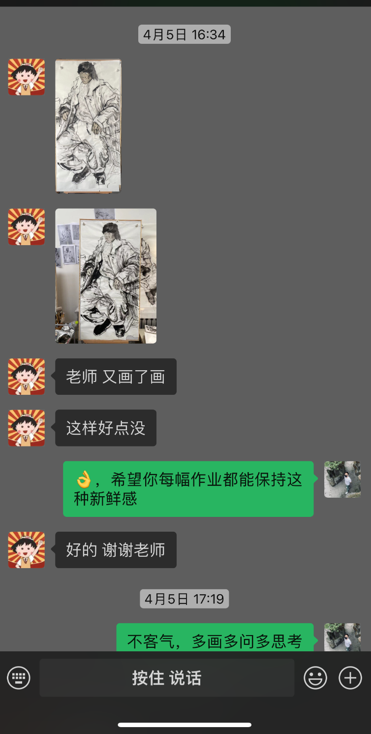 这次的中国画临摹专业课程虽然是线上进行,老师无法进入课堂指点我们。但是每天上午顾海涛老师的点评都十分的详细,围绕每个同学的作品深入讲解有哪方面的不足以及之后需要改进的大方向,小细节。感受到了老师对我们的关心和关注。另外,我们还可以随时通过班级群聊或者私信的方式随时向老师提出问题,这很大程度增加了学习的便捷程度。同时,也提升了我们的积极性。这让线下课程的不便捷程度降到了最低,让我们学习更加认真细致,得到了更多的感悟。(20级国画人物班\罗阳青)