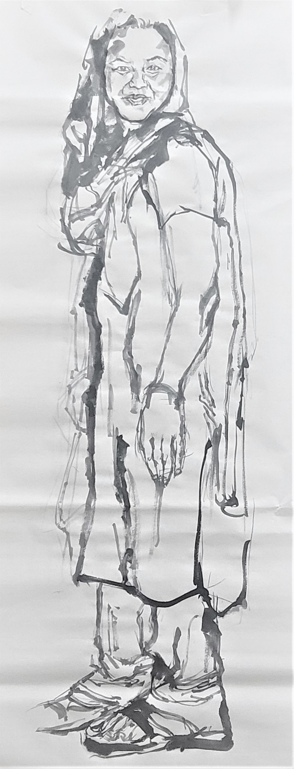 通过这几周的学习,之前我对人物并不是特别的敏感,然后在人物的一些方面可能会多多少少存在一些自己的问题。但是通过这几周的学习,首先我感觉对人物的外形上,通过一些大量的练习,就是手上功夫会熟练一些,对于结构骨点等处会有意识去留意处理,然后自己开始对人物会有一点自己的想法。然后在练习中,不论是一些线条还是墨色上,等等都会去注意。在提笔顿笔上会有灵活的走动,保持书写感,对于墨色的一些微妙变化也有了想法。我们对水墨的了解还是比较浅淡的,然后通过这几周顾老师的交流与输出,希望在之后会有更多的练习去不断的完善自己的水墨人物,去不断地抓住人物的造型与特征,感谢老师这段时间的指导。(20级国画人物本科班\李雯雯)