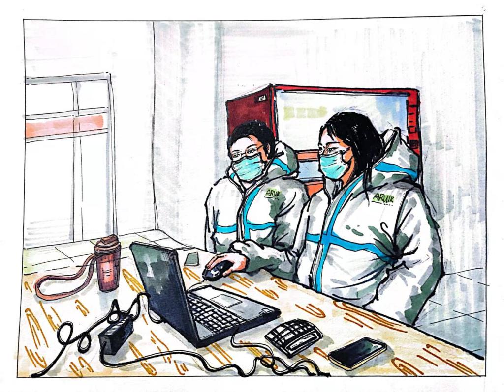 同学们以笔为戈,用心描绘出一幅幅接地气、暖人心的作品,将镜头中的瞬间定格在画纸上,记录下校园中抗击疫情的温情画面。同学们用艺术的语言凝聚人心,用手中的画笔呈现战疫先锋们的无私奉献和英勇精神,描绘他们眼中流露出的温度、真情与坚定。