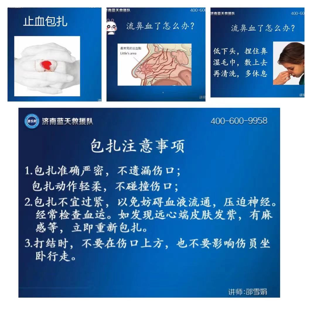 安全无小事,抓好安全工作是维护学校正常秩序,提高教育质量的基础。为响应省教育工委、学校多次召开的教育工作会议要求,在确保疫情安全的同时,确保师生其他方面的安全,正值国家安全教育日时期,造型艺术学院于4月13日特意邀请了济南九中教师、蓝天救援队宣讲员邵雪娟老师,线上为学生们讲解止血包扎和气道梗阻急救方面的生命安全教育讲座。本次讲座由造型艺术学院党总支书记李希进主持,学院辅导员老师、学生党员、学生干部、宿舍舍长参加。