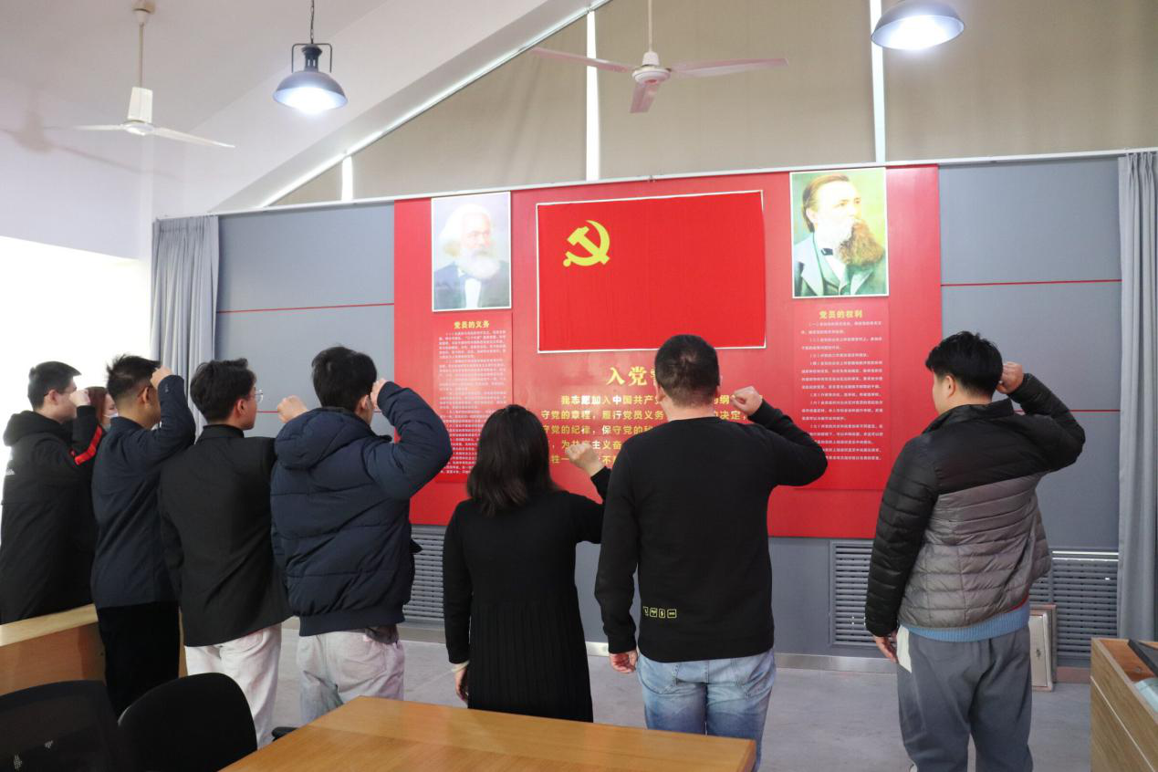 仪式伊始,全体党员肃立,面向国旗,奏响国际歌。接着,主持人发表简短祝词。李宝玉、刘子钰、戚佳琦、邵文凯、魏海淋、张含玥、张馨月8位新发展党员一起面向党旗宣誓,现场阵阵激昂的宣誓声,代表了对党忠诚的决心,庄严而神圣的宣誓声点燃了每一位预备党员的爱国情怀,和捍卫中华民族利益的神圣使命感。随后,党员代表们依次发言。面对着党旗,大家接受了一次身心的特殊洗礼。此外,预备党员代表发表讲话,承诺自己必将恪守在党旗下的诺言,切实提高自身的政治能力,科学决策能力,群众工作能力,想干事,能干事,敢干事,不断解决问题,破解难题,表露了自己成为一名优秀共产党员的决心和信心