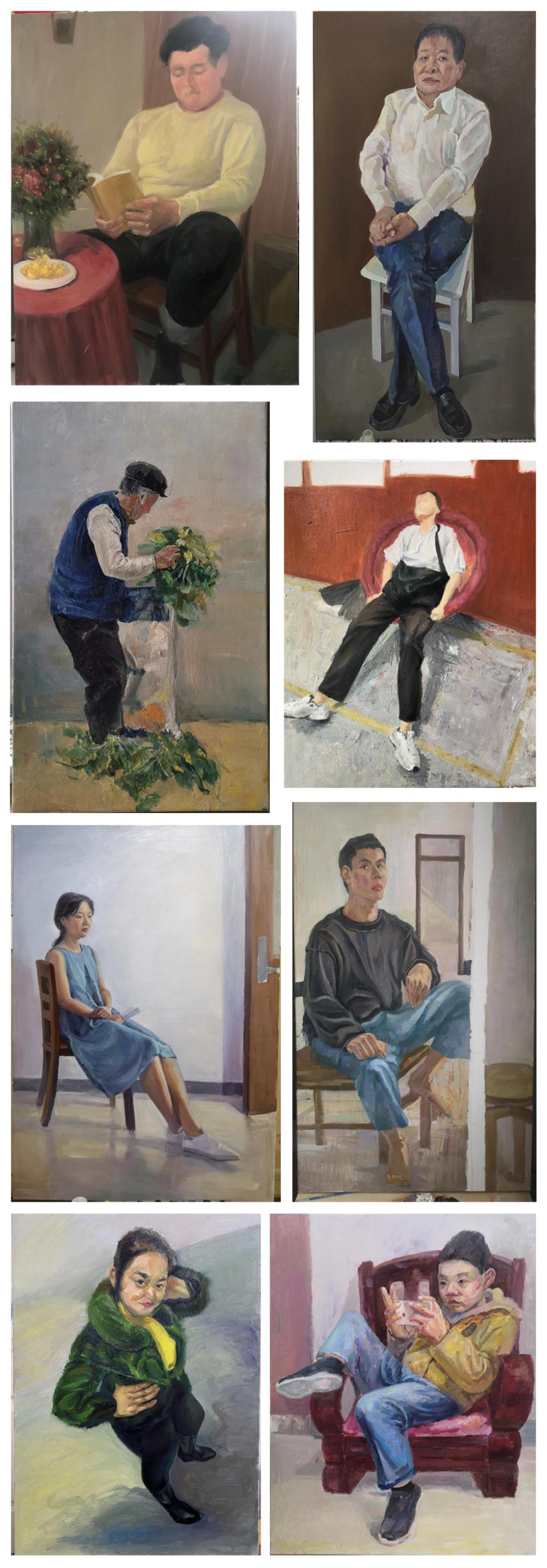 4、以家人和自己为模特,进行油画中长期作业写生。通过老师的课堂讲解指导,创作性构思,要一直带有创作的理念、创作的眼光去进行写生。同时要求利用老师推送和学生自选的国内外大家的优秀油画人像作品图片,从中选取一到两幅,借鉴它们的绘画理念与技法,甚至是色彩应用,制定目标进行写生。这样可以解决线上实践类教学中的诸多不便,譬如,不能面对面即时的及时调整指导,师生间对具体技术问题传达不到位等,出现问题会让学生处于茫然。这样学生自己制定了方向,老师可以有的放矢的引导思路,有序的针对性指导,学生理解的更加直观、清晰。
