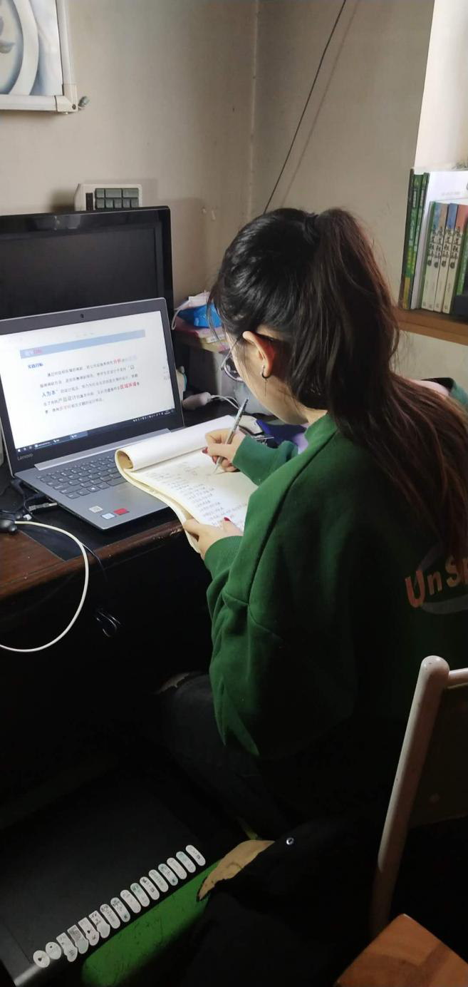 线上教学虽然阻断了老师和我们之间面对面的交流,但是同时也给老师和我们提供了一个相对自由轻松的交流空间。学生可以大胆的提问,老师也可以随时回答讲解,完全没有受到时间空间的限制,反而更加方便、迅捷。网络教学让我们更加直观的学习老师所讲的专业知识内容,有些不懂或来不及记的东西,我们还可以通过手机截屏的方式来记录,以便课下更好的回顾老师所讲的知识点。