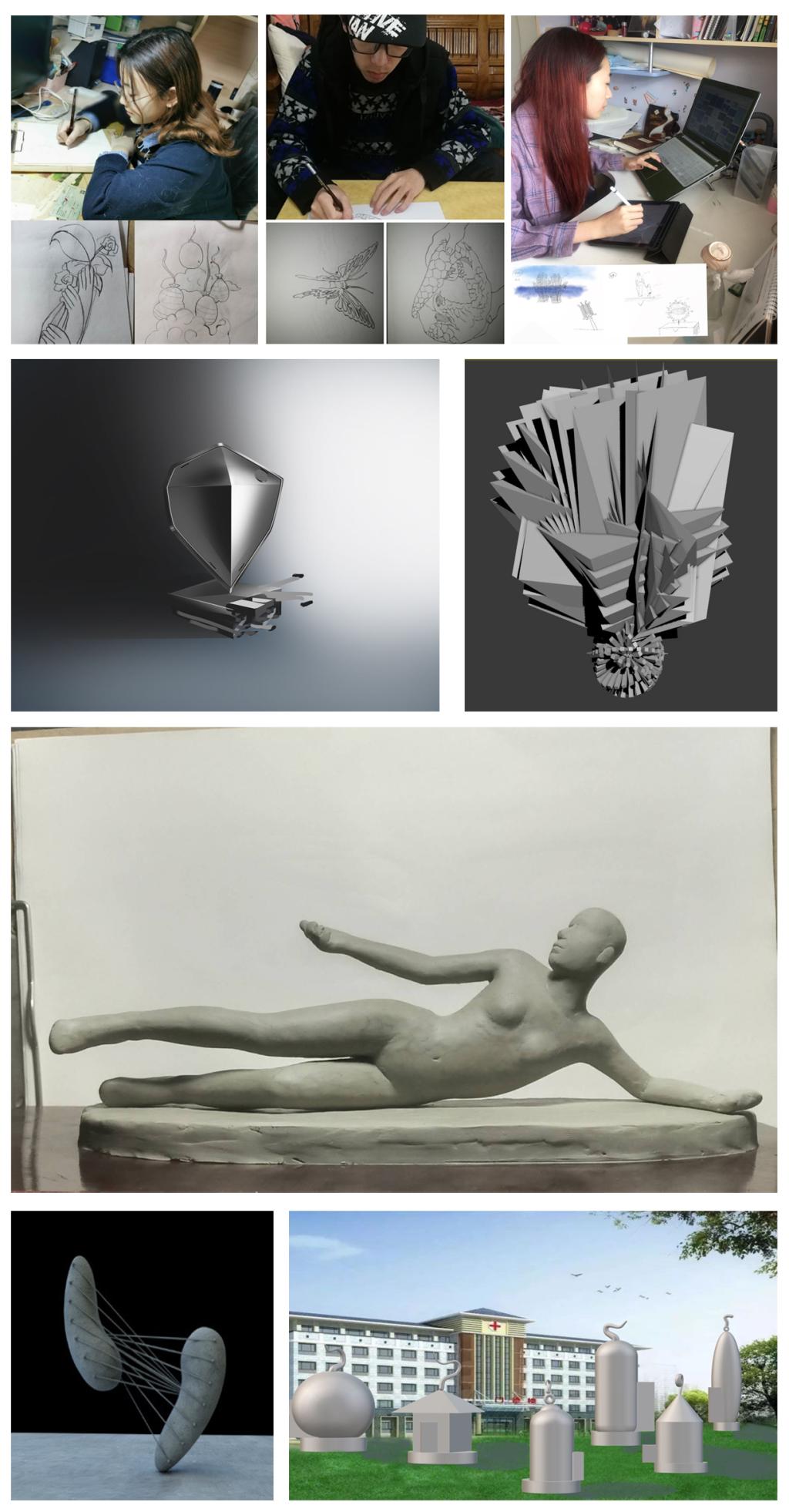 但是通过线上作业讲评呈现出来的现状,也反映出线上课堂中对于实践类专业的基础训练的不足,线上课堂的二维绘画的实践方式不能完全解决雕塑三维训练的一些问题,因此也给学生提出疫情结束返校后的一些学习建议,争取让学生能够更好的完成本课程的学习任务,弥补线上课堂的不足。