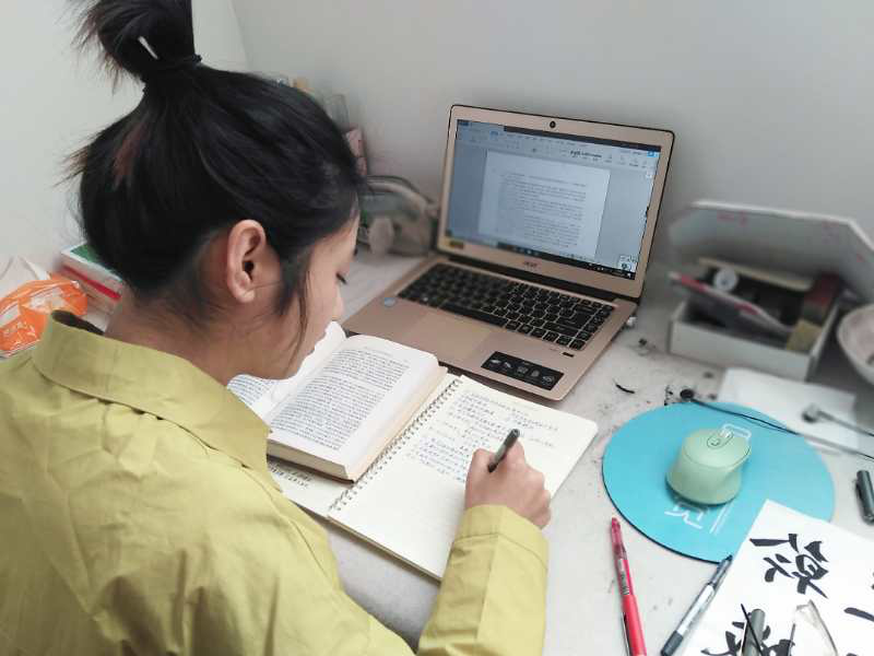 当前,我们正经历着一场没有硝烟的战争,这是一场全民参与的疫情防控阻击战,没有局外人包括我们在校的大学生。在疫情没有完全结束的时候,我们利用丰富的媒体设备,采取线上教学。在线上教学期间,老师辛勤付出,同学们认真学习,效果并不亚于线下教学。在家学习的这一段时间,学习环境较学校还是舒适一些,学习的时候没有外界干扰,更加能够进入学习状态;唯一一点遗憾就是部分专业相关的工具都在学校,对专业创作上有一定的阻碍,但也在想办法克服。我坚信,在老师的付出和同学们的努力下,我们的专业课一定会保持较高的水准,做到“标准不降低、学习不停顿、研究不中断”。等到疫情结束我们返校的时候,每个人的专业水平都会得到提升。