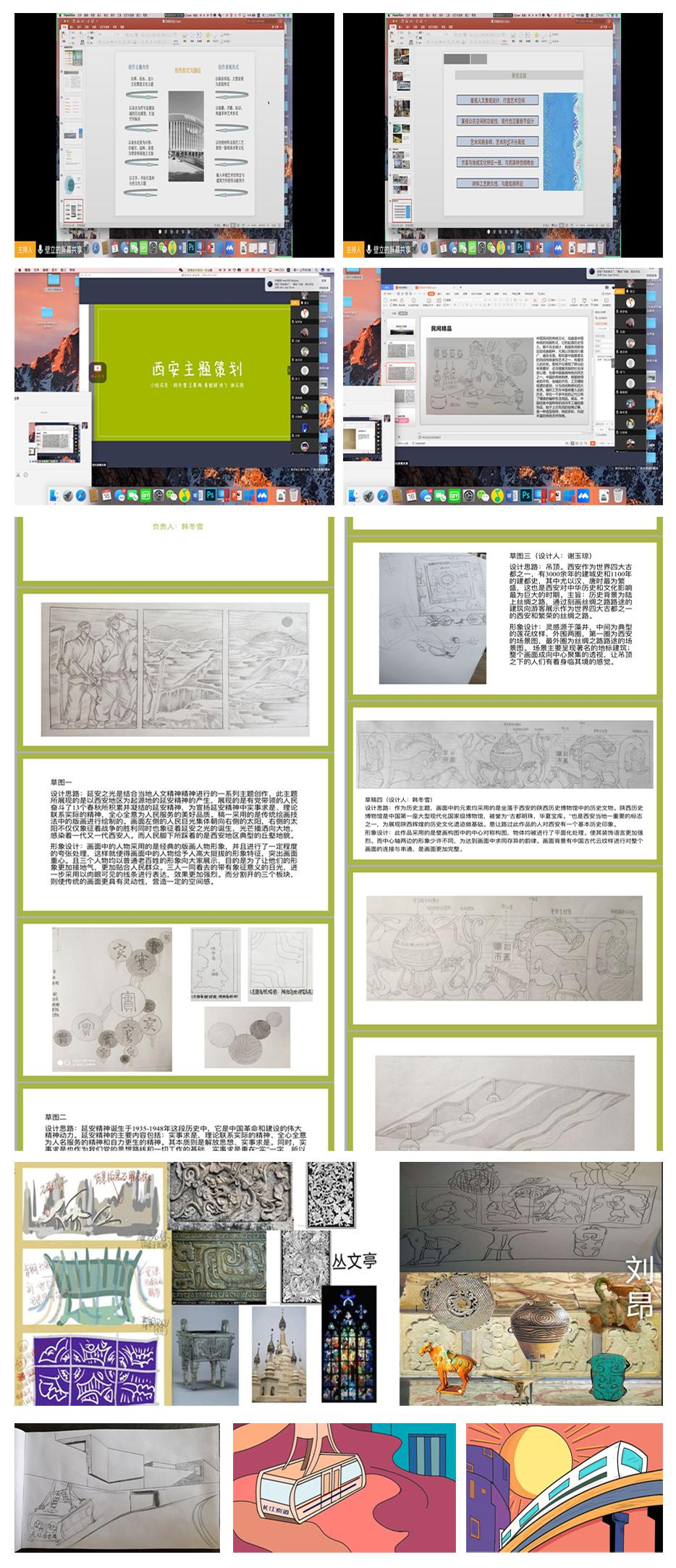 《壁画创作1》课程在这几周的在线直播教学中,整体情况良好,教学能够按照教学计划和教学安排顺利的进行,学生都能够按照教学要求及计划进行学习。整体创作分四组分别进行,每组分别完成了素材收集,创作主题分析,搜集素材资料丰富,在线教学能清晰、准确的传递教学信息。同学们这一新的教学方式表现得很认真,有极高的热情。
