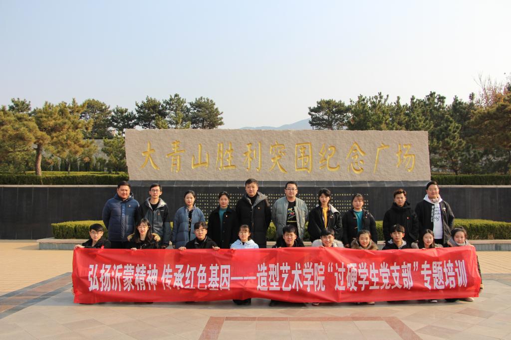 为深入学习贯彻习近平新时代中国特色社会主义思想,创新组织生活方式,建设过硬学生党支部,12月末,造型艺术学院学生党支部组织全体师生党员赴临沂市开展“弘扬沂蒙精神、传承红色基因”专题培训活动。