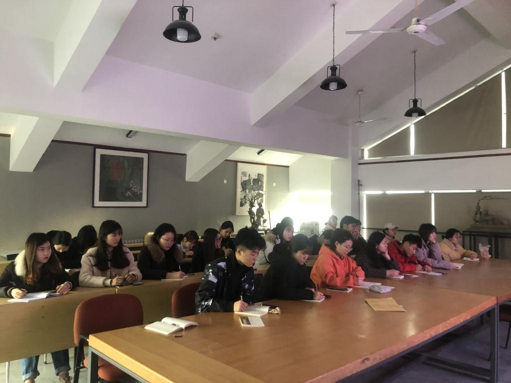 为进一步强化基层组织建设,增强党支部后备力量,12月初开始,造型艺术学院党总支组织开展了为期一个月的2019年度第二批入党积极分子培训工作,12月11日,在学院多媒体教室,党总支书记牛序茜为入党积极分子上了“共产主义是我们矢志不渝的追求”专题党课,造型艺术学院2019年度第二期入党积极分子聆听本次党课。