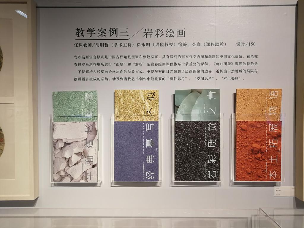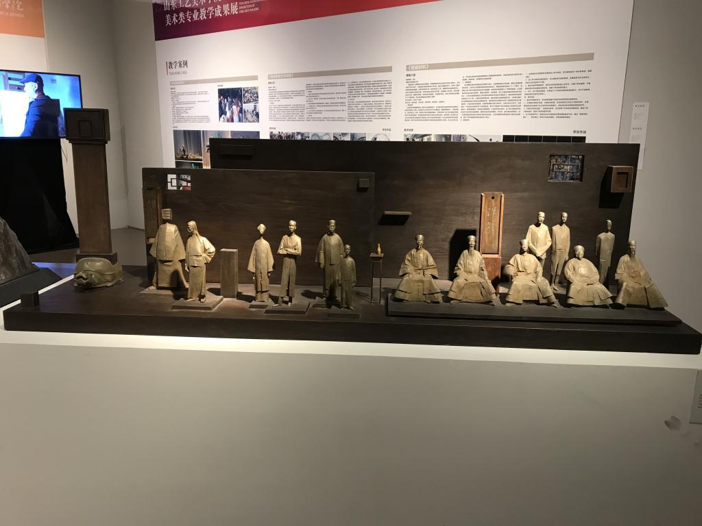 四个课程介绍:《水墨人物写生》展板与视频(李勇),《油画静物》展板与视频(刘宁),《皴法》展板与视频(谢其云),《人体形态研究》展板(商长虹);三个教学案例:《传统材料创作》展板(曹淑海),《传统艺术民俗转换》展板(刘劲蓬),《壁画材料》展板(王舒);雕塑作品《气壮河山--共和国三十六位军事家》(曹淑海),雕塑作品《洋务·维新》(李庆利)和部分传统材料课程作品四件。