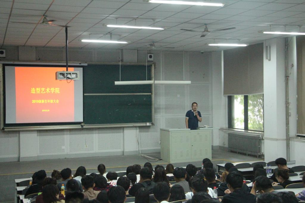 为了帮助2019级新生更好地适应大学生活,传达落实学校安全稳定工作会议的精神,做好国庆假期期间学生的安全工作,9月29日下午,造型艺术学院于综合办公楼五合堂召开2019级新生年级大会,会议由辅导员许威治主持,2019级全体新生参加。