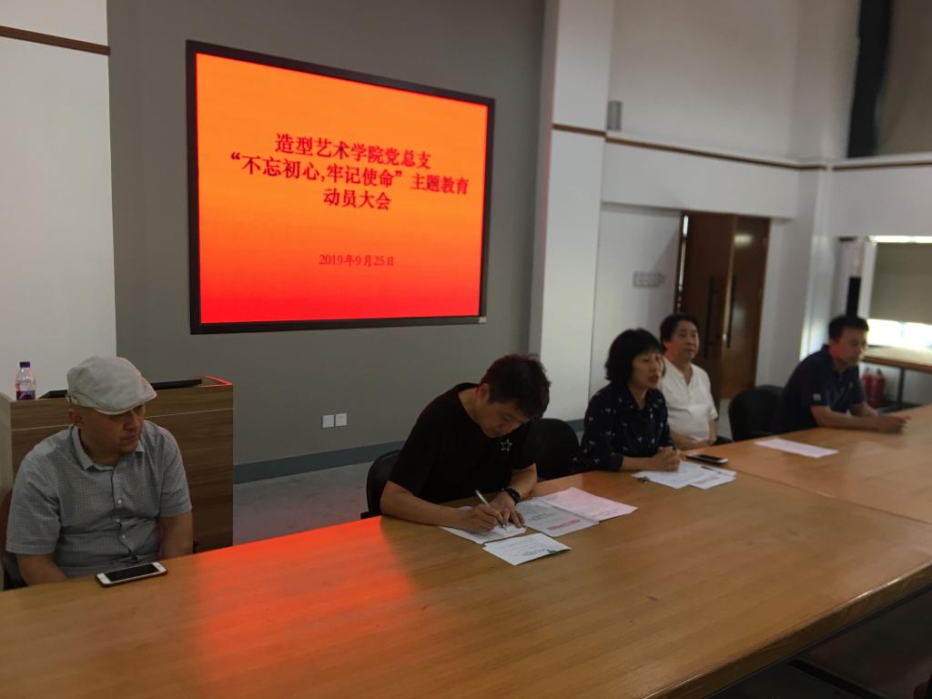 9月25日下午,造型艺术学院党总支召开“不忘初心、牢记使命”主题教育动员大会,学院处级干部和全体党员参加本次会议,会议由党总支书记牛序茜主持。