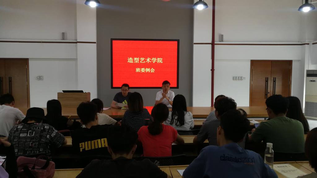 5月24日中午,造型艺术学院于学院多媒体教室召开学生干部例会,党总支副书记杜鹏、辅导员许威治主持会议,全体学生干部参加本次会议。