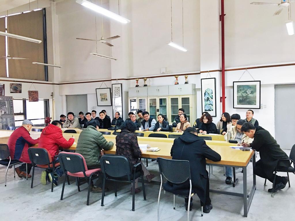 李勇总结了学院去年的工作,指出2018年学院各方面工作取得一定的成绩,学院教学、办公空间极大改善,教研室改造工作顺利完成,有效激发了老师们工作的积极性;“为人民而设计”主题展览创作中,学院老师团结协作、集体创作优秀绘画作品,展现了学院和谐、团结、向上的良好的精神风貌。李勇指出,新的一年,学院将继续按照学校有关精神要求,“担当作为、狠抓落实”,坚持以教学为中心,在教学、科研、创作、管理等方面更上一个台阶;同时以十三届全国美展为契机,充分发挥专业优势,力争取得优异成绩,不断扩大学院的影响力。