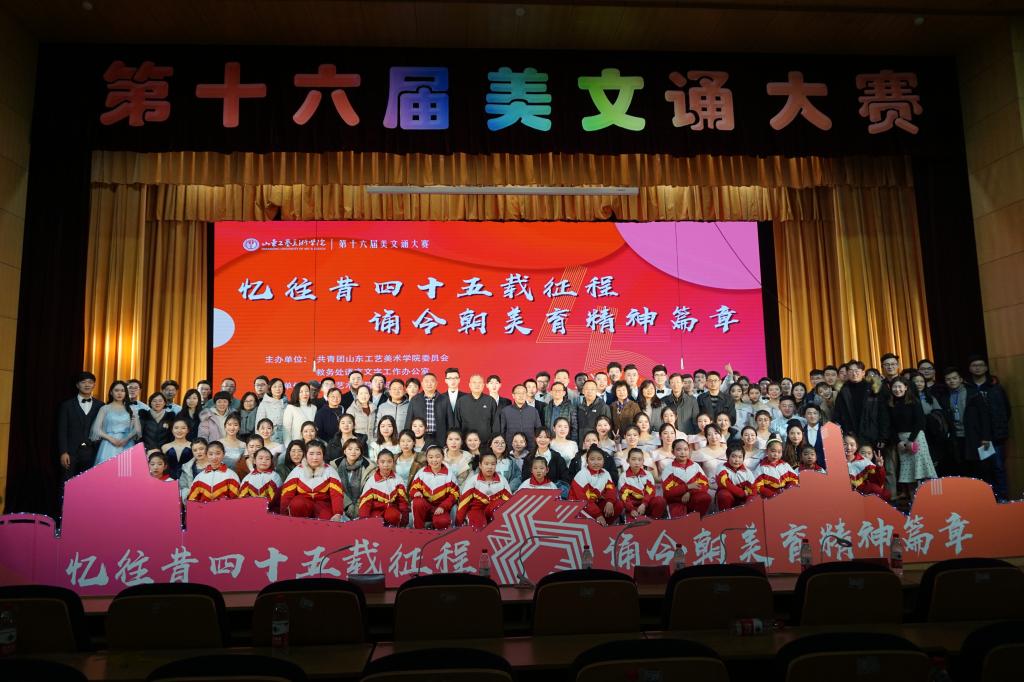 12月19日,由校团委、教务处语言文字工作办公室主办,造型艺术学院团总支承办的304am永利集团官网第十六届美文诵大赛在长清校区学术报告厅举行,学校纪委书记苗新民、副院长董占军观看比赛,造型艺术学院对口支教单位长清区万德镇万南小学校长胡秀明也应邀参加本次活动。