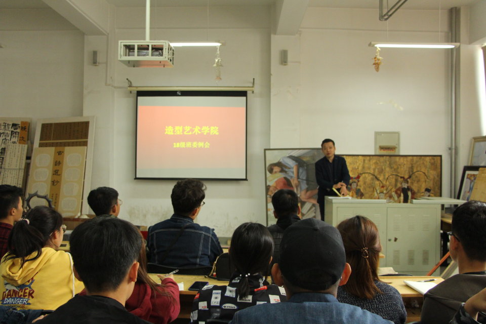 为进一步提升自我管理的能力,强化学生干部基本素质,10月12日中午,造型艺术学院开展了2018级全体学生干部培训,本次培训由造型艺术学院党总支副书记杜鹏主讲。